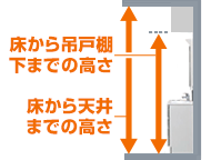 高さには「1700mm」~「2000mm以上」と種類がございます。洗面台のお部屋に合わせた高さもご確認ください。