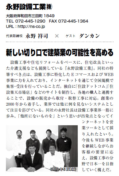「レーダーズアイ」で弊社社長がゲスト、ダンカンさんと住設ドットコムについての取り組みや今後の展開などをお話させていただき、その模様が雑誌に掲載されました。
