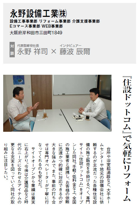 インターネットビジネスに関する情報を取り扱う「日本ネット経済新聞」に、住設ドットコムの社長が掲載されました!